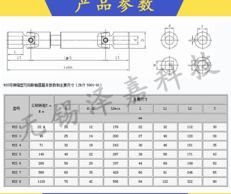 产品详情:WSS可伸缩万向联轴器是兼具以下特性的小型万向联轴器: